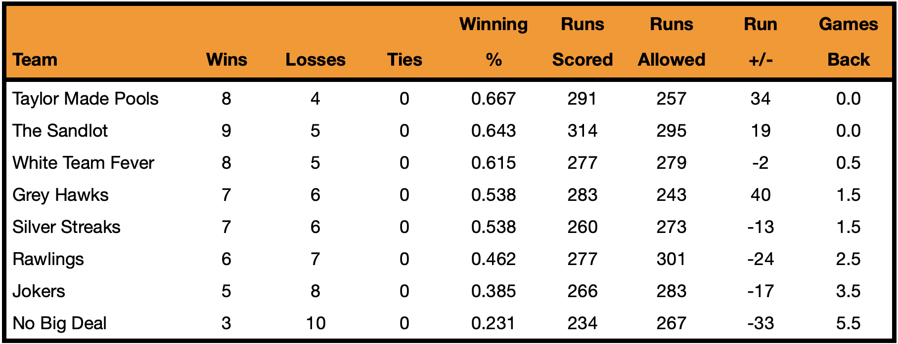League Standings